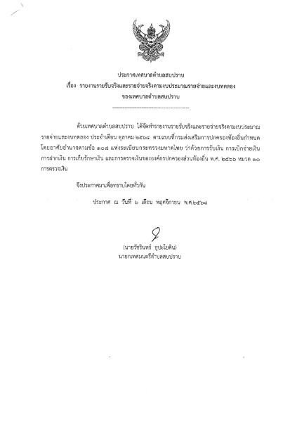 ✨ รายงานรายรับจริงและรายจ่ายจริงตามงบประมาณรายจ่ายและงบทดลอง ของเทศบาลตำบลสบปราบ ประจำเดือน ตุลาคม ๒๕๖๘