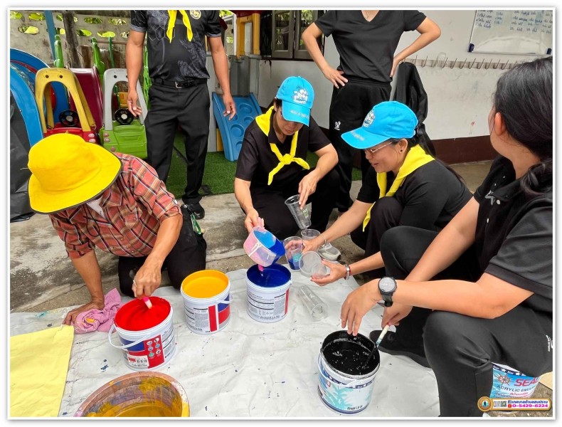 ทุกฝ่ายร่วมกันวาดภาพและตกแต่งกำแพงของศูนย์พัฒนาเด็กเล็กให้มีสีสันสดใส ✨ กลายเป็นพื้นที่เรียนรู้และแรงบันดาลใจใหม่สำหรับเด็กเล็กและเยาวชน 🌟
