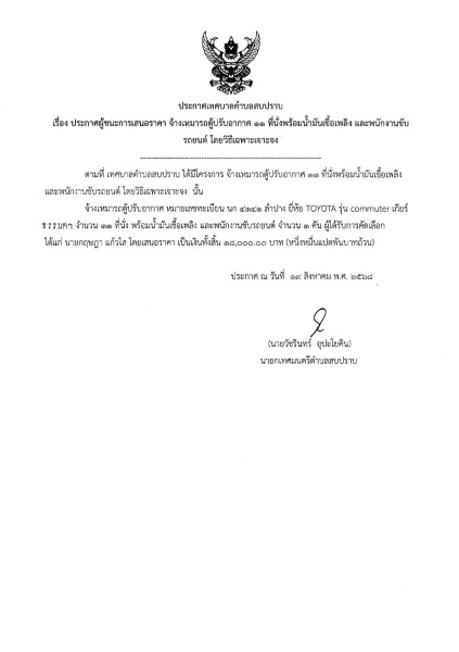 ประกาศผู้ชนะการเสนอราคา จ้างเหมารถตู้ปรับอากาศ ๑๑ ที่นั่งพร้อมน้ำมันเชื้อเพลิง และพนักงานขับรถยนต์ โดยวิธีเฉพาะเจาะจง