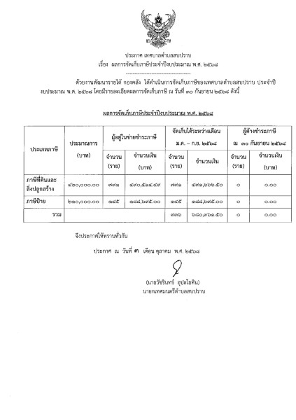 ผลการจัดเก็บภาษีประจำปีงบประมาณ พ.ศ. ๒๕๖๘