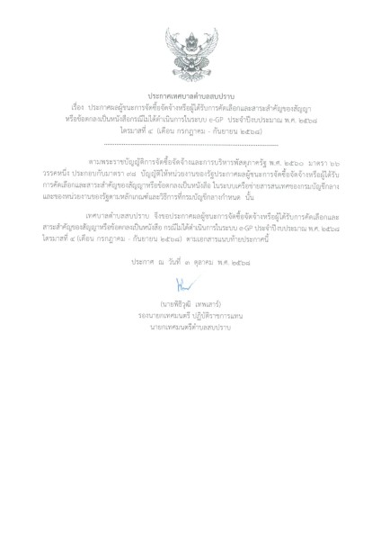ประกาศผลผู้ชนะการจัดซื้อจัดจ้างหรือผู้ได้รับการคัดเลือกและสาระสำคัญของสัญญาหรือข้อตกลงเป็นหนังสือกรณีไม่ได้ดำเนินการในระบบ e-GP ประจำปีงบประมาณ พ.ศ. ๒๕๖๘ ไตรมาสที่ ๔ (เดือน กรกฎาคม - กันยายน ๒๕๖๘)