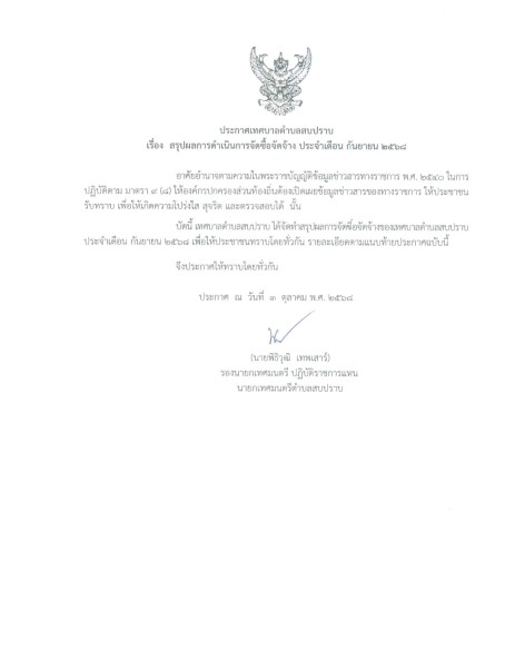 สรุปผลการดำเนินการจัดซื้อจัดจ้าง ประจำเดือน กันยายน ๒๕๖๘