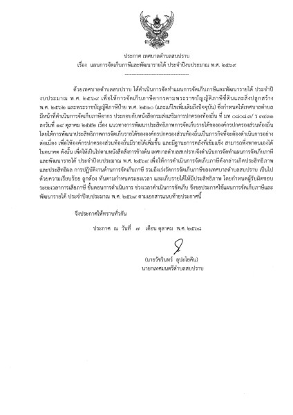 แผนปฏิบัติการจัดเก็บภาษีที่ดินและสิ่งปลูกสร้าง ประจำปี พ.ศ.๒๕๖๙