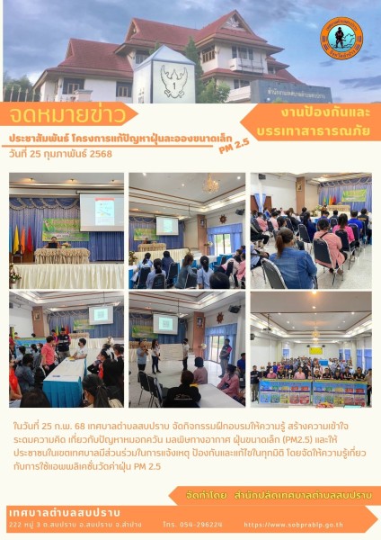 ในวันที่ 25 ก.พ. 68 เทศบาลตำบลสบปราบ จัดกิจกรรมฝึกอบรมให้ความรู้ สร้างความเข้าใจ