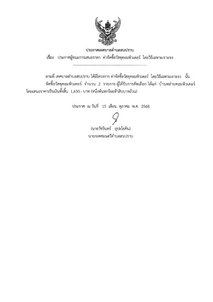 ประกาศผู้ชนะการเสนอราคา ค่าจัดซื้อวัสดุคอมพิวเตอร์ โดยวิธีเฉพาะเจาะจง