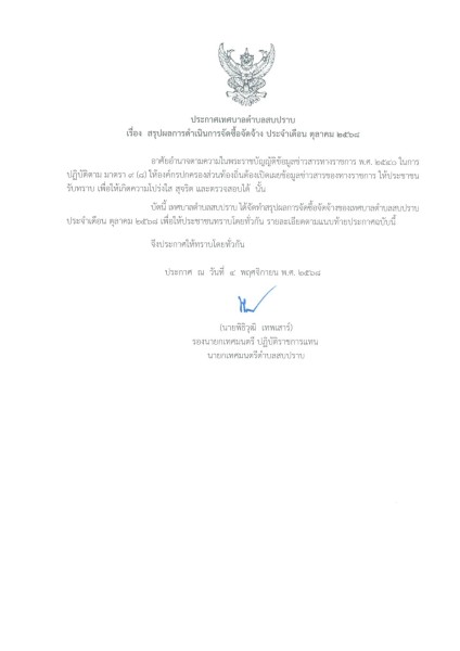 สรุปผลการดำเนินการจัดซื้อจัดจ้าง ประจำเดือน ตุลาคม ๒๕๖๘